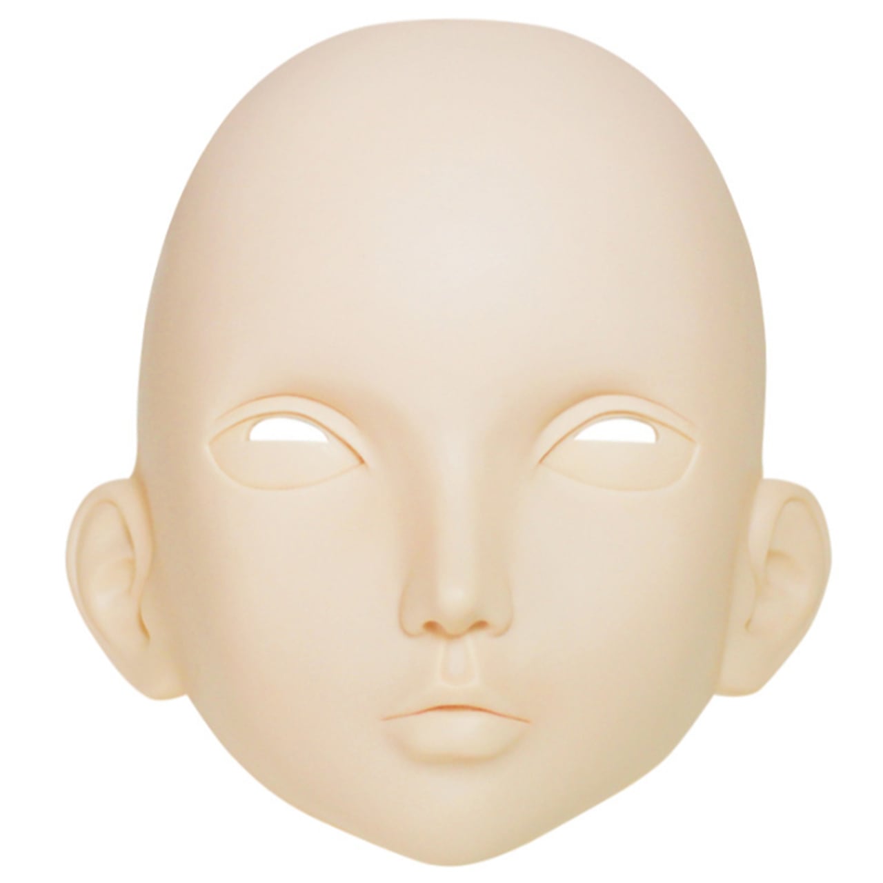 A soft dolly mask featuring a cool look with a lowered mouth corner
