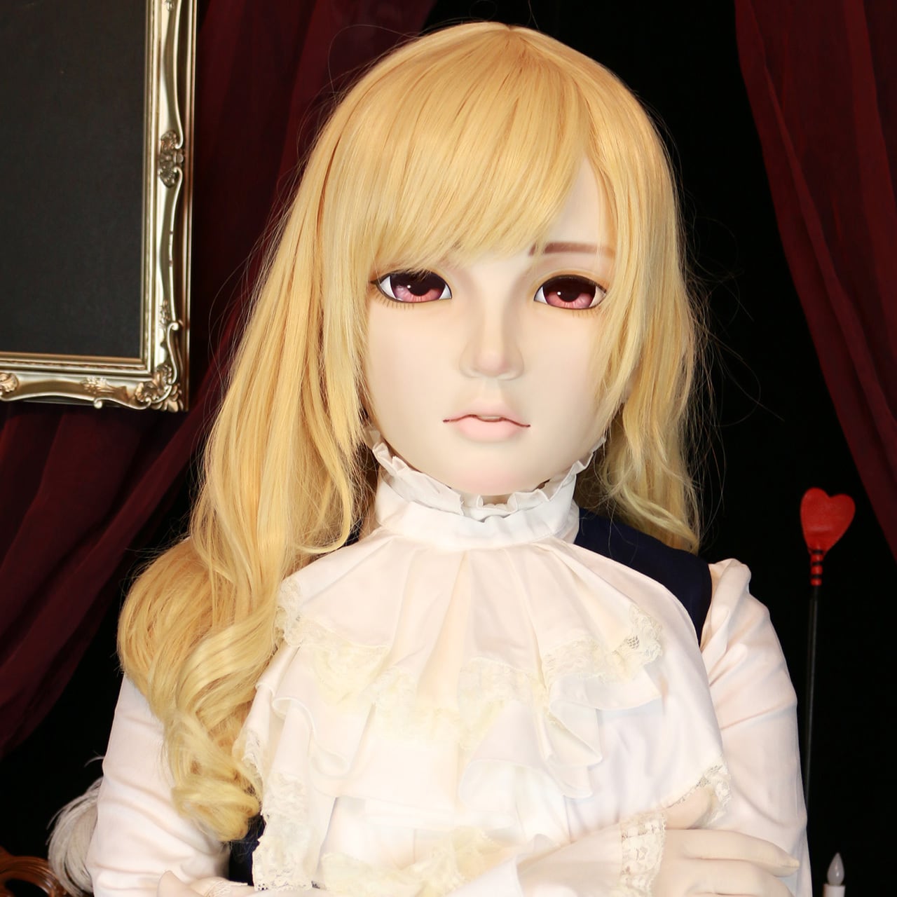 A doll mask featuring voluminous lips and a rounded face line