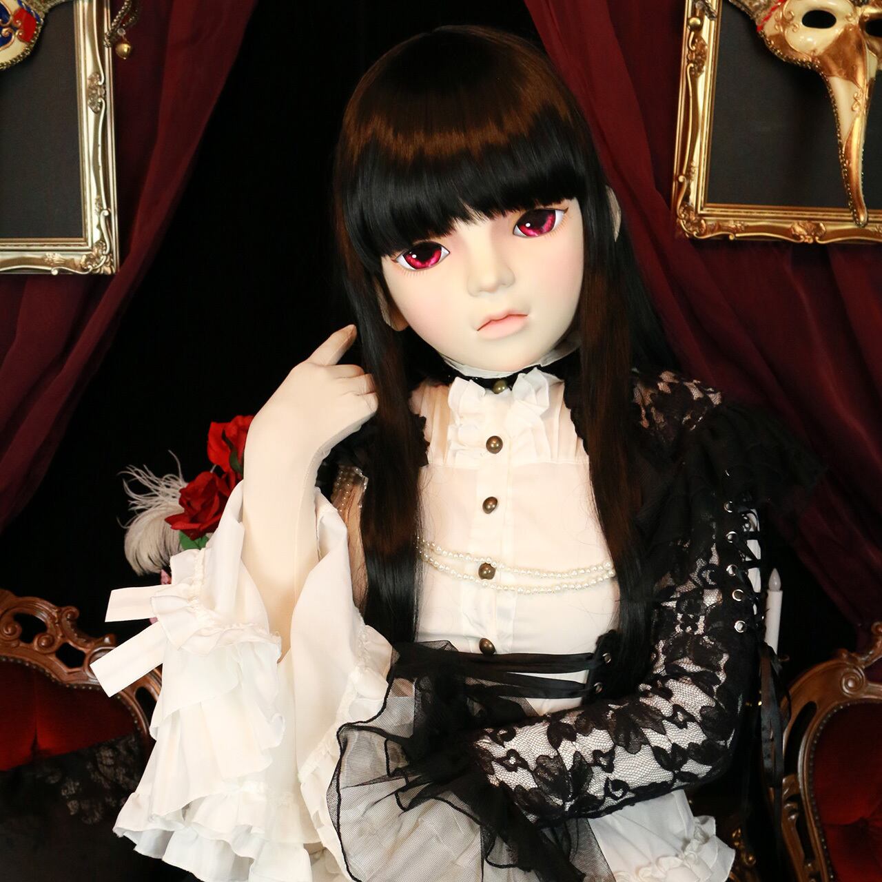 A doll mask featuring voluminous lips and a rounded face line