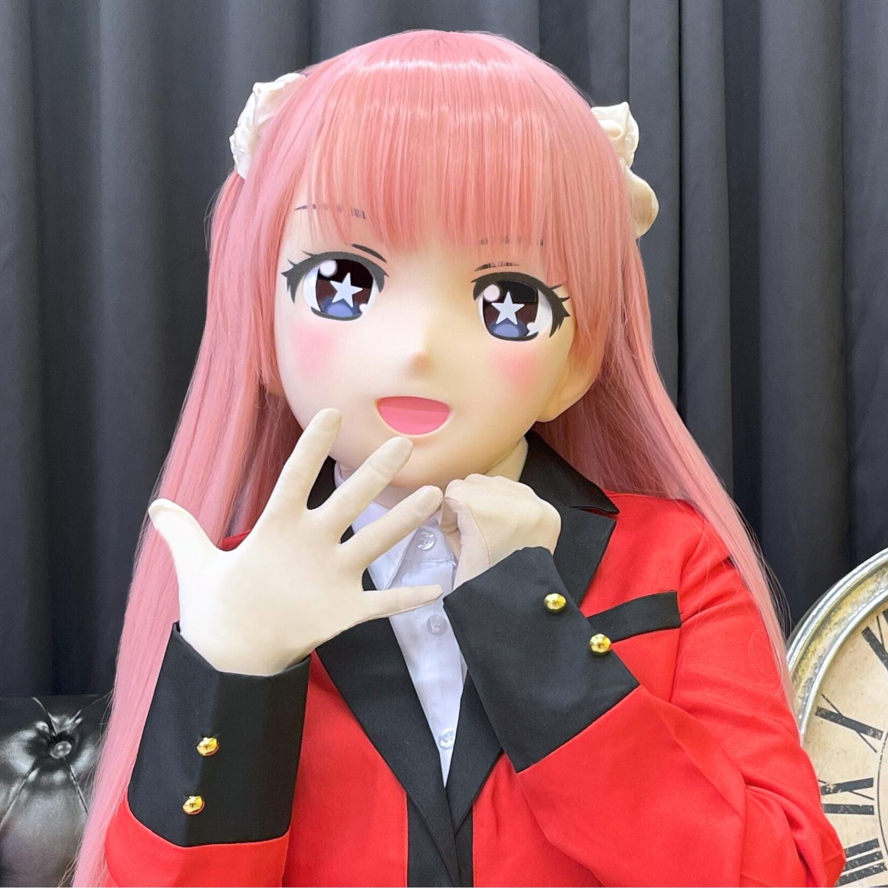 EX Happy is a model with an impressive cute open mouth.